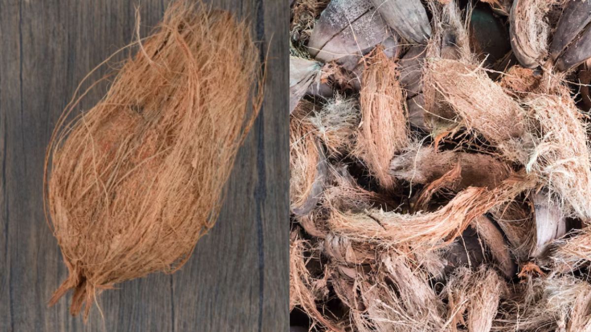 छिलके उतारें: सूखे नारियल से रेशों को सावधानी से अलग कर लें। कोशिश करें कि रेशे लंबे और गुच्छों में निकलें।